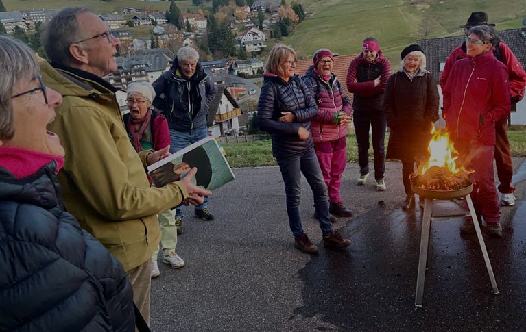 Das ist eine Sache, die viele interessiert. Zur letzten Schwarzwaldvereins-Wanderung 2024 unseres Ortsvereins Hinterzarten-Breitnau kamen 30 Menschen. Und es gab einiges zu erzählen: von der Wilden Jagd, die in diesen Nächten unterwegs ist, von den Vorhersagen, die möglich sind, von Sagen und Bräuchen eben, die viele noch beschäftigen. Geräuchert wurde auch, wenigstens ein bisschen: mit Räucherkegeln, die die Teilnehmerinnen und Teilnehmer mit nach Hause nehmen konnten. Nach dem (Aus-)Räuchern unbedingt die Fenster öffnen, um mit dem Rauch auch die schlechte Energie aus dem Raum zu vertreiben. (Alle Angaben ohne Gewähr ;-). Danke für die netten Fotos, die unterwegs gemacht wurden. Hier eine kleine Auswahl.