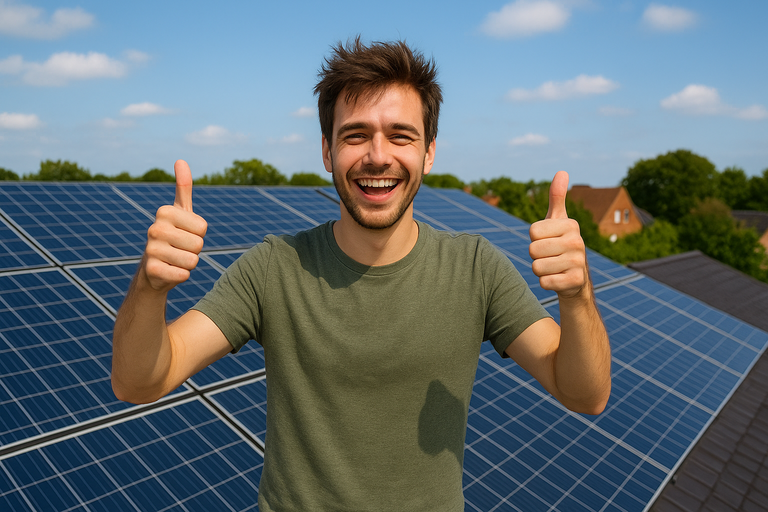 Übrigens habe ich die KI gebeten, Peters Entwicklung vom verzweifelten Kohlehändler zum erfolgreichen Solarunternehmer zu verbildlichen. Bittesehr: